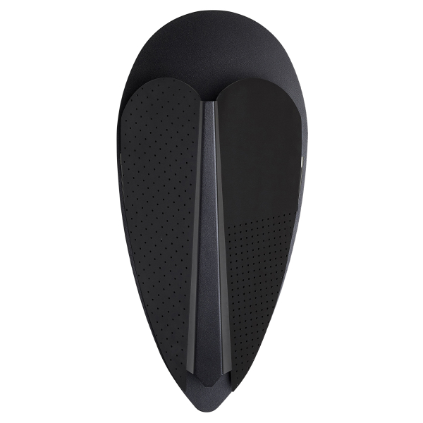 Sorcier ist eine Wandleuchte, die die Kraft der gabunischen Ngil-Ritualmasken des Fang-Volkes heraufbeschwört. Dieses von LCE signierte Modell fängt das Licht durch ein grafisches Muster ein, das aus feinen Perforationen besteht. Sein skulpturales Profil vermittelt eine lebendige Präsenz, die alte Legenden flüstert. Die Silhouette strahlt eine fast totemische Energie aus, zwischen zeitgenössischer Kunst und sakralem Objekt.