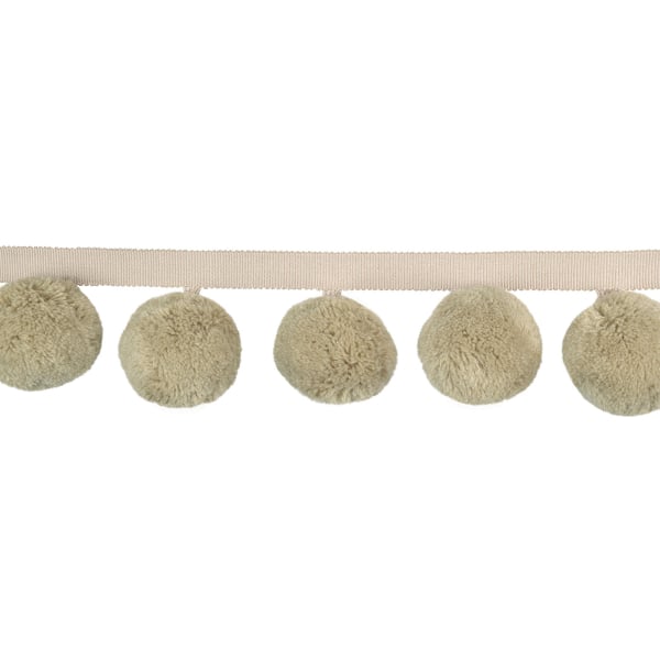 Kleine, flauschige Kreise bilden den von Houlès herausgegebenen Fransen-Pompon Calypso 75 mm. Die Bommel, die an einem strukturierten Band aufgehängt sind, zeichnen ein dekoratives Muster mit einem regelmäßigen Rhythmus. Die großzügige Höhe unterstreicht das Volumen und die Flexibilität der Bewegung. Jedes Detail offenbart eine textilen Arbeit, die reich an Relief ist.