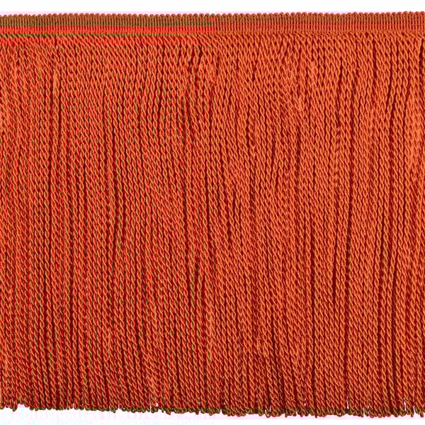 Der 210 mm lange Fransenstreifen ist ein dekoratives Finish von Houlès, das aus hängenden, gezwirnten Fäden besteht. Die Regelmäßigkeit der vertikalen Linien bildet einen rhythmischen und flexiblen Rand. Ihre große Höhe verstärkt die visuelle Präsenz und verleiht ein großzügiges Volumen, das sich für raffinierte Dekorationen eignet. Das Ganze wird auf einem dezenten Borteband befestigt, das die harmonische Struktur verstärkt.