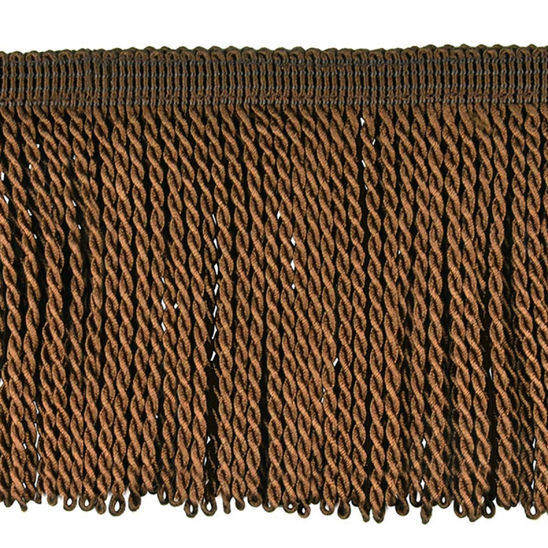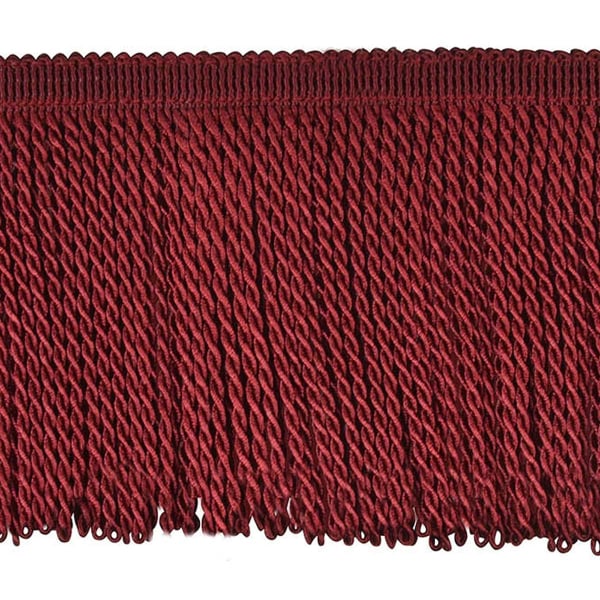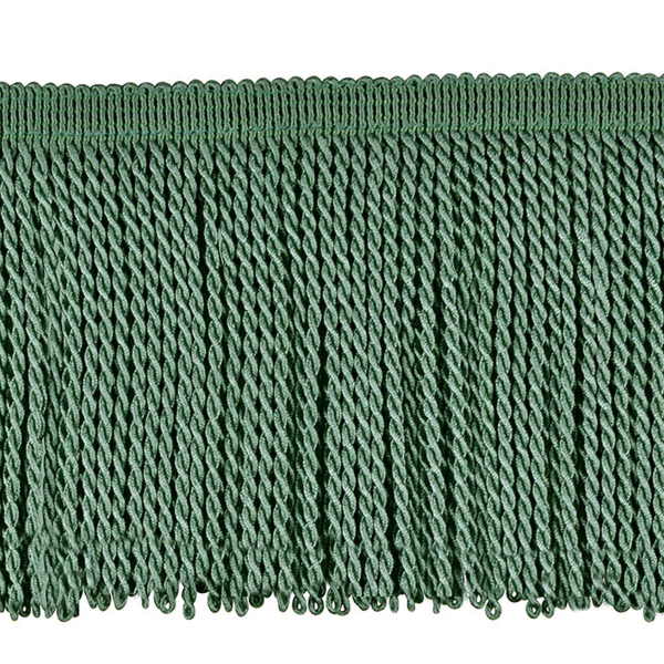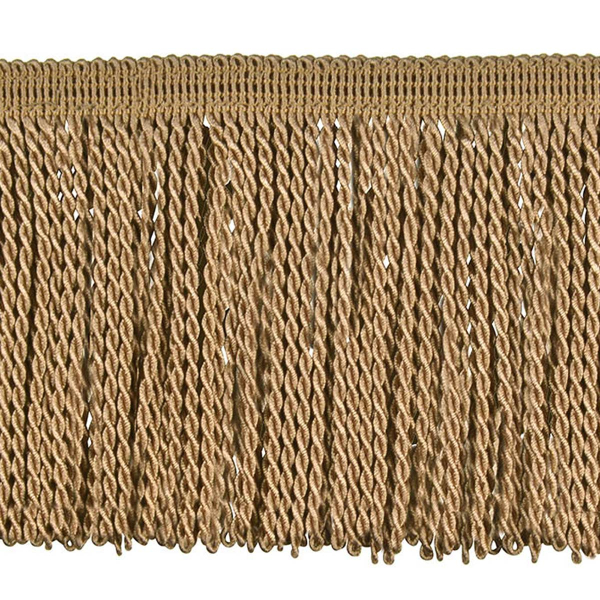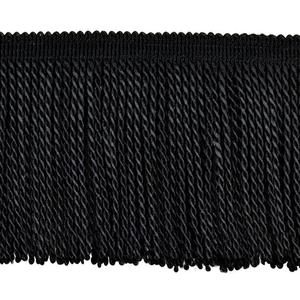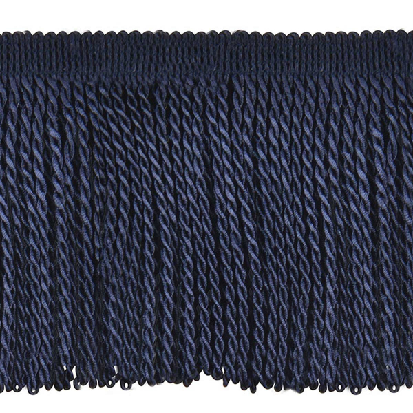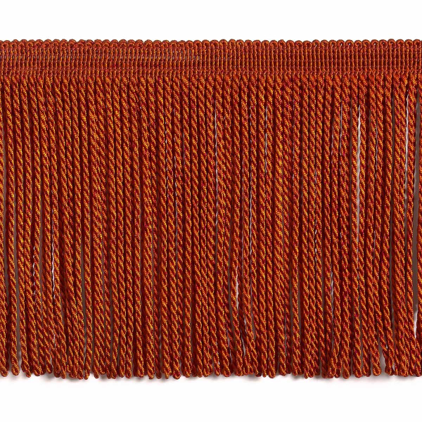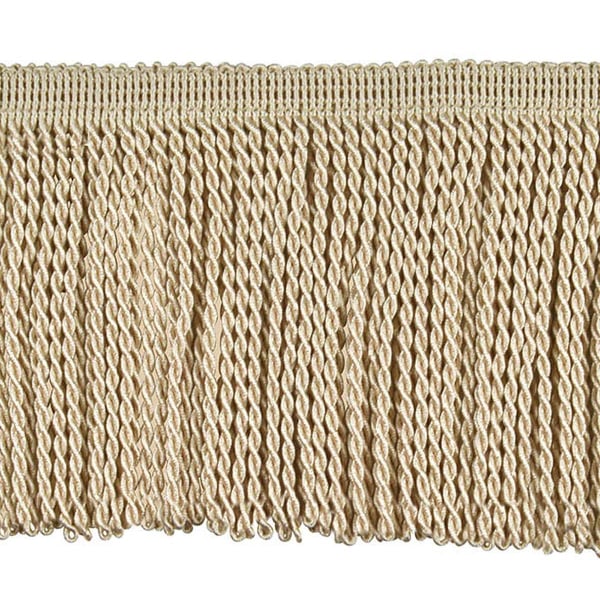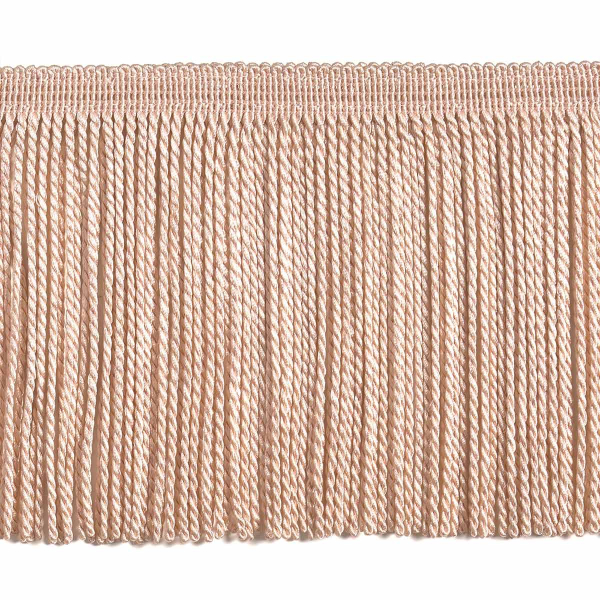 Der 120 mm lange Fransenbesatz ist eine dekorative Bordüre, die aus einer Reihe fein gedrehter, gezwirnter Fäden besteht. Jeder Strang, der regelmäßig aufgehängt ist, zeichnet eine klare und lebendige Vertikale. Das Relief entsteht aus der rhythmischen Ansammlung von Fasern und suggeriert eine eingefrorene Bewegung. Dieses von Houlès signierte Stück verkörpert präzises Know-how in der Welt der Posamenterie.