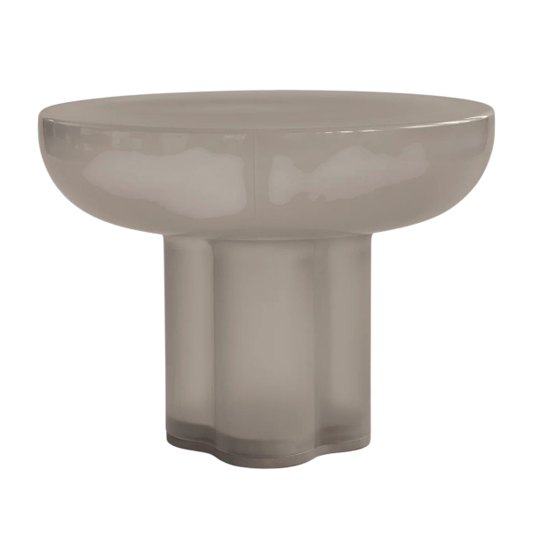 Der von der brutalistischen Architektur inspirierte Crown Glass ist ein Beistelltisch mit einem markanten skulpturalen Design. Seine Silhouette aus mundgeblasenem Glas erinnert an eine organische Form. Der robuste Sockel in Form einer dreilappigen Säule trägt eine gewölbte Platte, die im Gleichgewicht steht. Dieses von 101 Copenhagen signierte Stück spielt mit der Transparenz und Dichte des Materials, um eine starke visuelle Präsenz zu schaffen.
