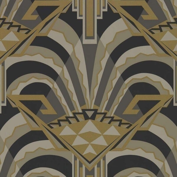 Das abstrakte Motiv der Tapete Conway, die ein Archiv aus dem Jahr 1930 originalgetreu darstellt, zeigt mit grafischen Details gezeichnete Glasfiguren. Geometrische Formen, die von geschwungenen Linien ergänzt werden, machen dieses Design aus. Es ist in einer matten und metallischen Farbpalette erhältlich und sorgt für ein modernes und elegantes Erscheinungsbild.