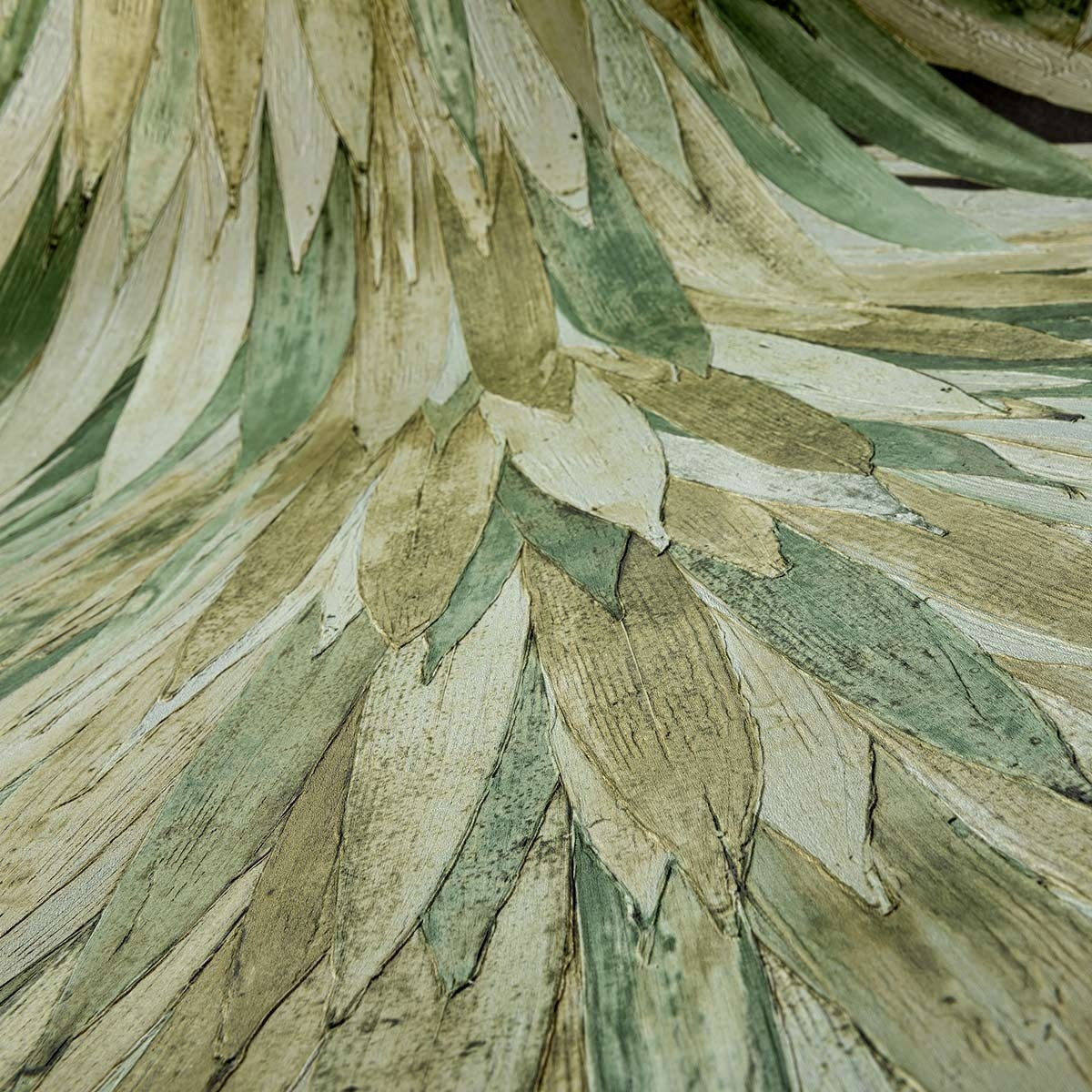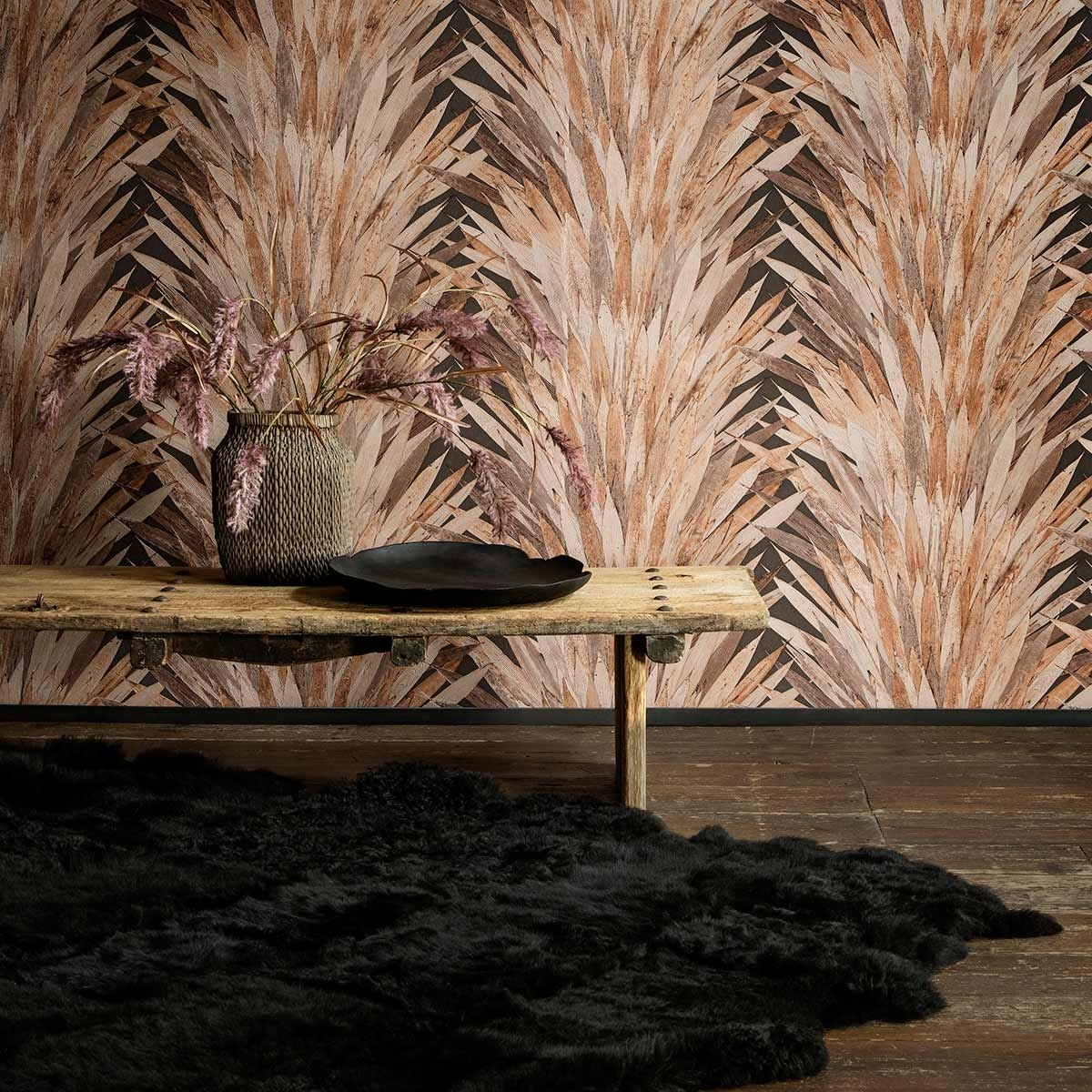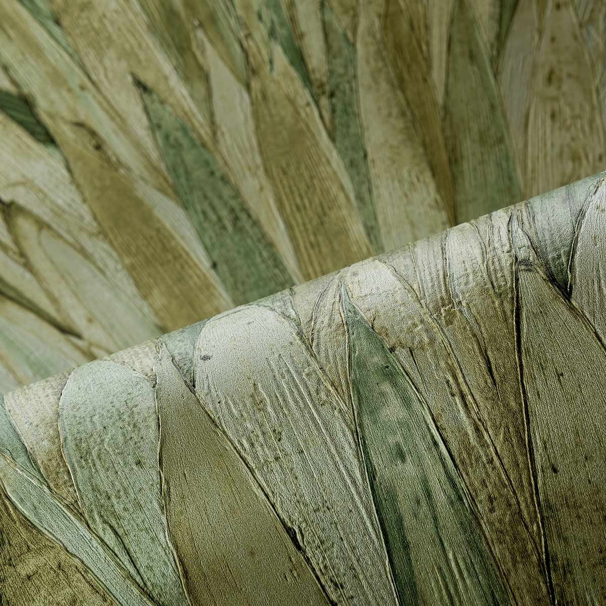 In Form eines Fächers zeichnet Arte Blätter der tropischen Pflanze Pandan. Das Reliefmuster erinnert an das Aussehen einer Collage. Die Schattierungen der hellen und dunklen Werte bringen Kontrast und Tiefe. Diese in natürlichen Farben angebotene Tapete lädt zum Reisen ein.