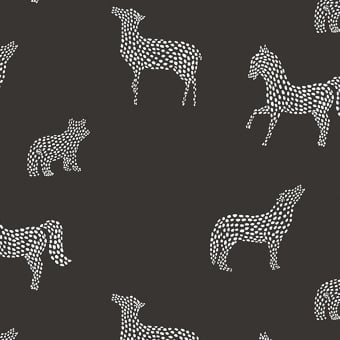 Die Tapete Bestiaire besticht durch die Zweifarbigkeit ihrer Grafik, die mit Tusche hergestellt wurde. Weißliche Silhouetten afrikanischer Tiere tauchen aus dem dunklen Hintergrund auf, wie eine traumhafte Vision mitten in der Nacht. Die Figuren, inspiriert von den Erinnerungen von Emmanuelle de Malleray, nehmen durch Sprenkel Gestalt an. Der starke Kontrast zwischen Dunkel und Hell, der durch den naiven Charme ausgeglichen wird, verleiht den Wänden gleichzeitig Charakter und Weichheit.