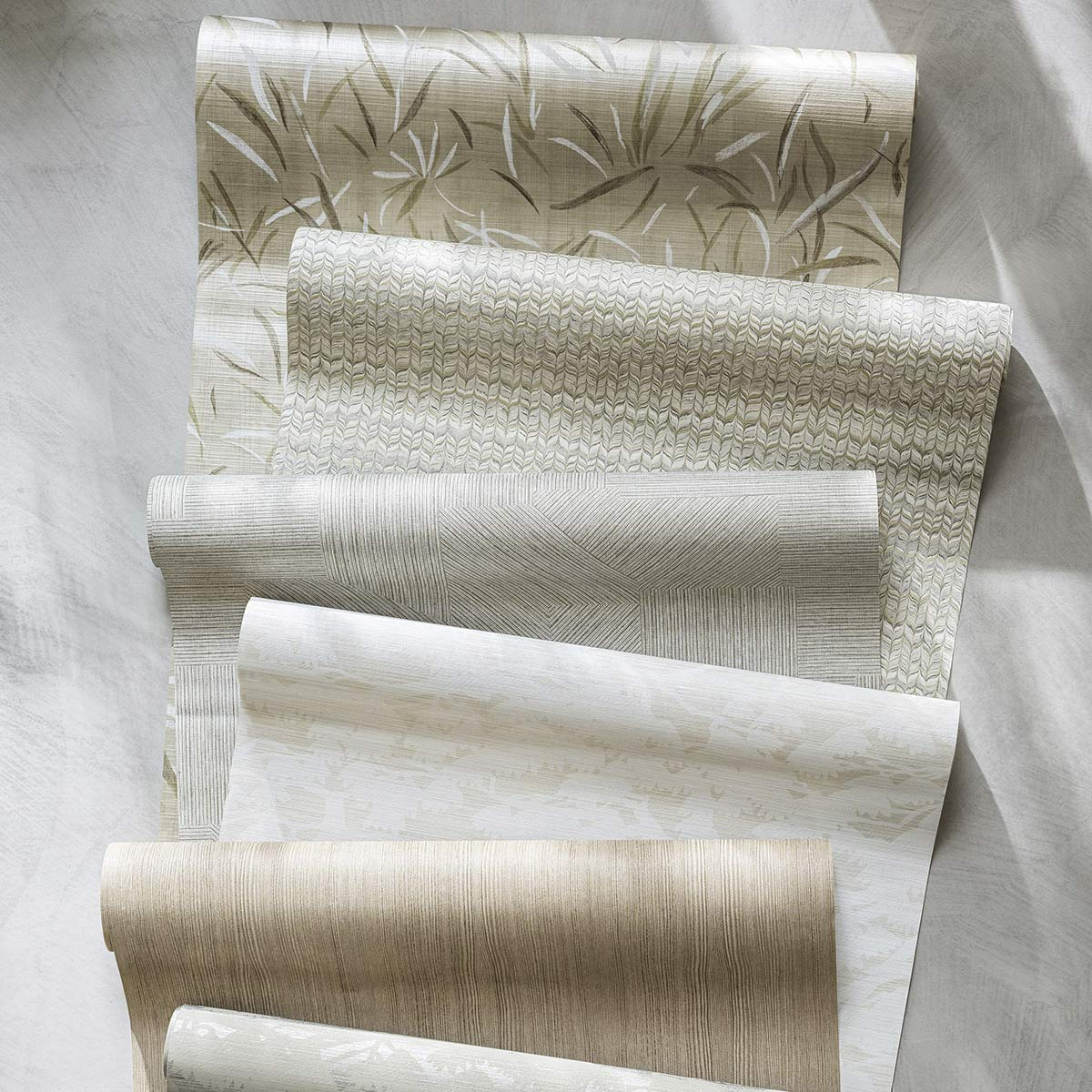 Die Tapete Soboku zeigt ein fein gearbeitetes geometrisches Muster, wie ein marmoriertes Werk. Seine unregelmäßigen und strukturierten Fischgrätmuster erinnern an die Adern einer natürlichen Oberfläche, die von der Zeit geformt wurde. Eine Metallschicht verstärkt die Reliefs und verbreitet einen dezenten Glanz. Diese von Harlequin entworfene Wanddekoration schafft eine einzigartige Atmosphäre.