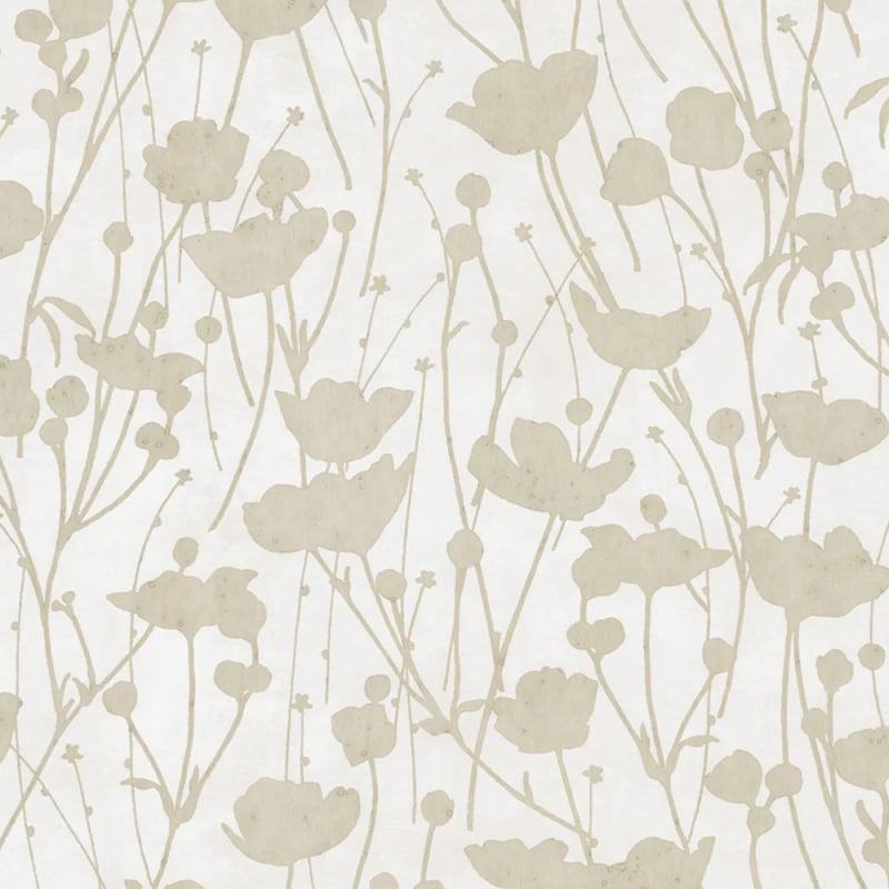 Stilisierte Mohnblumen-Silhouetten entfalten sich in einem anmutigen Ballett auf der Tapete Shimmering Poppies. Das von der Natur inspirierte Blumenmuster spielt mit subtilen Kontrasten zwischen Mattheit und metallischem Glanz der Blätter. Jeder leicht gebogene Stiel erhebt sich rhythmisch vor einem einfarbigen Hintergrund. Diese Wandverkleidung von York verleiht eine beruhigende visuelle Harmonie.