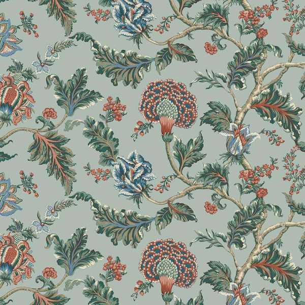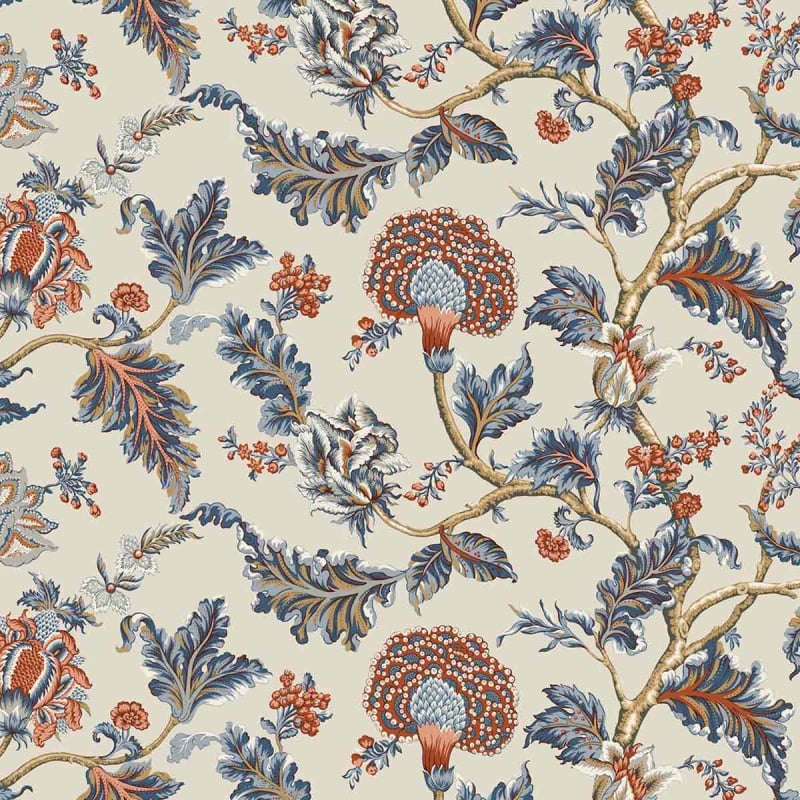 Die Tapete Monroe entfaltet ein jakobinisches Blumenmuster aus üppigen Blättern und mehrschichtigen Blüten. Die gewundenen Zweige zeichnen einen freien Weg in einer Pflanzenkomposition mit beeindruckenden Proportionen. Jedes Detail offenbart eine große Feinheit des Designs. Diese von York Wallcoverings signierte Tapete erinnert an die Ornamente alter dekorativer Textilien.
