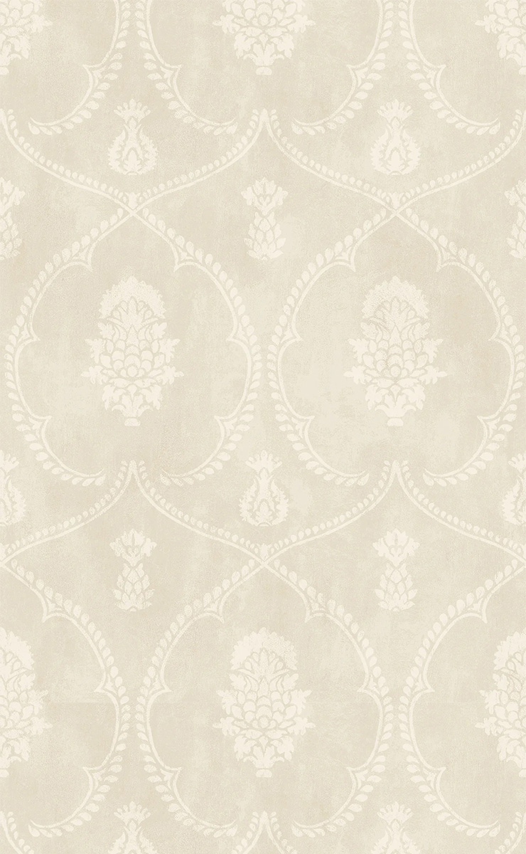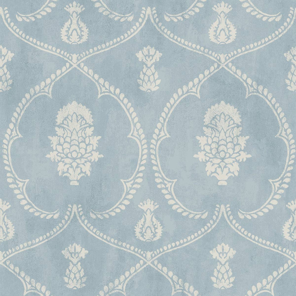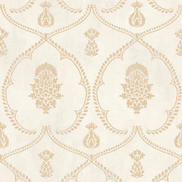 Royal Damask von York Wallcoverings ist eine Tapete mit stilisiertem Blumenmuster, die nach einem authentischen ornamentalen Rahmen organisiert ist. Botanische Medaillons, die in Arabesken eingeschlossen sind, erinnern an die großen klassischen Dekorkodizes. Diese Tapete fesselt den Blick durch die kontrollierte Wiederholung von Formen in einer Struktur mit raffinierten Akzenten.