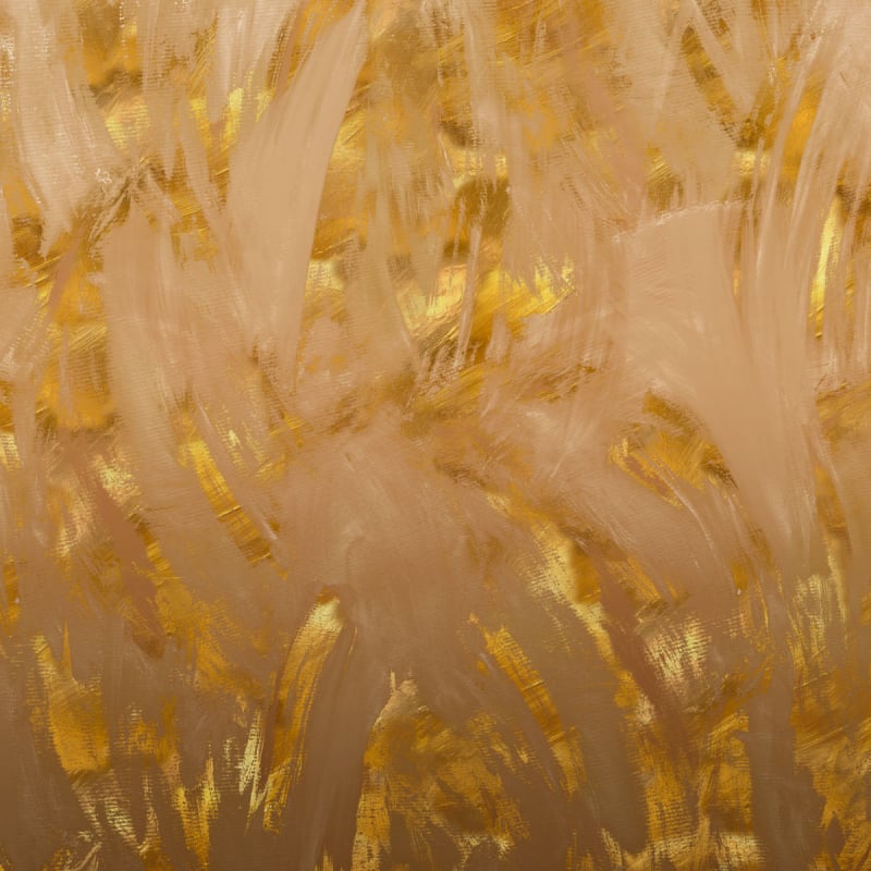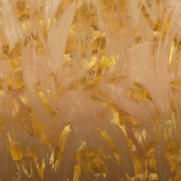 Die Panorama-Tapete Phébus von Raccord Parfait taucht in ein warmes Licht, in dem goldene Funken wie Flammen auf einer reich strukturierten Oberfläche tanzen. Breite Pinselstriche durchziehen das Dekor in einem dichten und spontanen Gewirr. Das aus einer gestischen Malerei hervorgegangene Motiv vermischt dynamische Linien, übereinanderliegende matte Schichten und goldene Akzente mit lebendigen Reflexen. Jeder Strich spiegelt eine freie Bewegung wider, die von einer subtilen und flamboyanten leuchtenden Wärme durchdrungen ist.