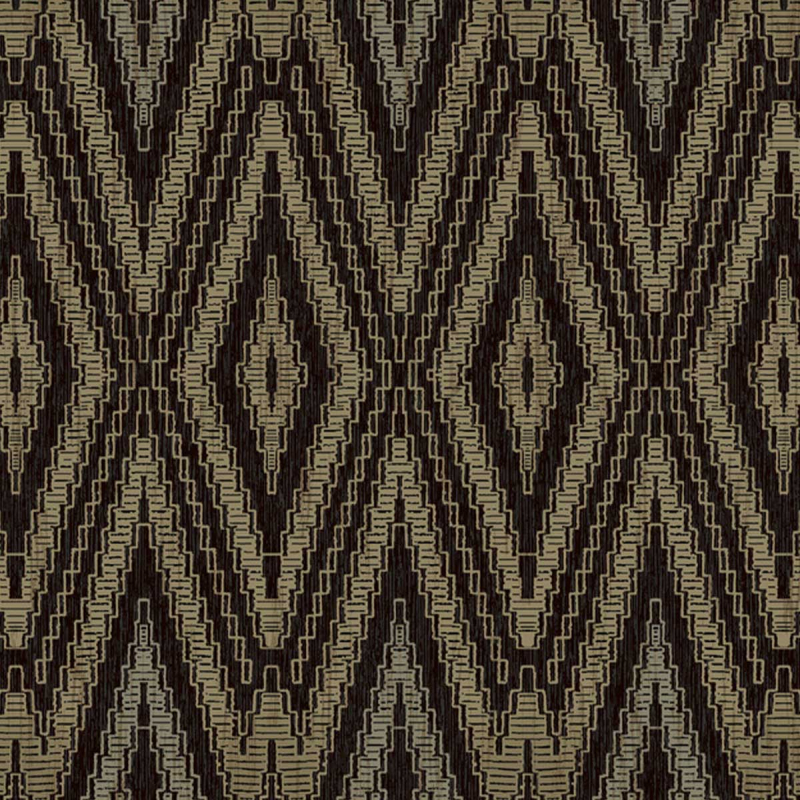 Die Tapete Diamond Marquise präsentiert ein ziseliertes geometrisches Muster. Ineinander verschachtelte Rauten und gestufte Linien bilden ein vom Ikat inspiriertes Design mit einer hypnotischen visuellen Rhythmik. Die leicht metallisierte Textur erinnert an Reflexionen, die sich je nach Licht ändern. Dieses strukturierte Dekor ist Teil einer grafischen Ästhetik, die für York Wallcoverings typisch ist.