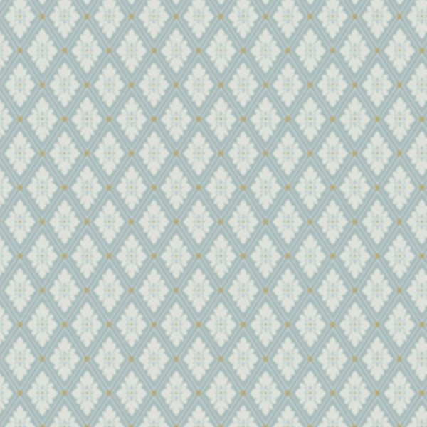 Die Tapete Selma entfaltet ein geometrisches Muster mit kleinen Kacheln, die stilisierte Blumen beherbergen. Jede Figur stellt eine regelmäßige Raute dar, die mit dezenten goldenen Punkten durchsetzt ist, die dem Ganzen einen subtilen Glanz verleihen. Die zarte Wiederholung des Designs erzeugt einen Eindruck von Komfort und Raffinesse. Düro bietet hier eine Komposition mit einer kontrollierten Balance zwischen dekorativer Struktur und visueller Weichheit.
