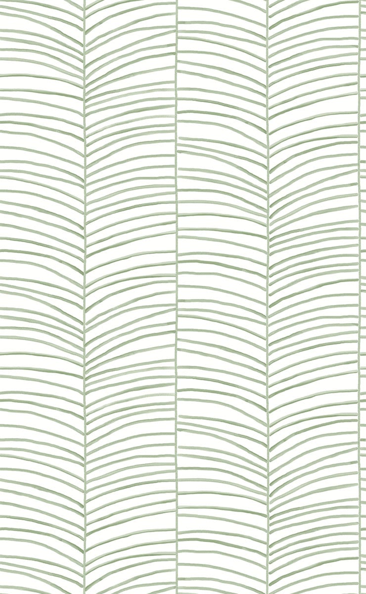 Cascade Palm Chevron ist eine Tapete mit einem stilisierten Pflanzenmuster, das von mit Aquarell gezeichneten Palmen inspiriert ist. Die fließenden Linien entfalten sich in Chevrons, um einen weichen, ausgewogenen und minimalistischen Rhythmus zu schaffen. Jede Linie lässt die Hand des Künstlers in einer kontrollierten Unregelmäßigkeit erahnen. Diese Komposition von York Wallcoverings spiegelt eine Leichtigkeit wider, die voll und ganz angenommen wird.