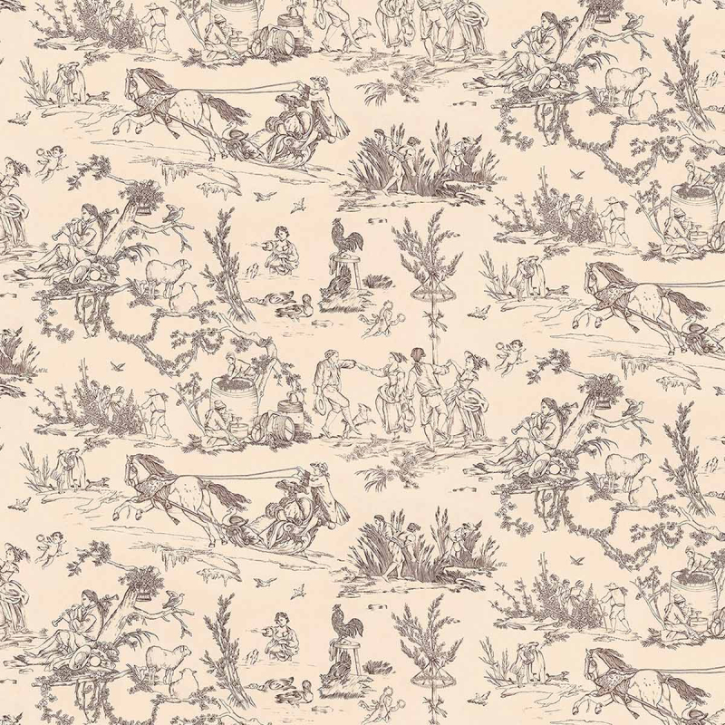 Das von Isidore Leroy signierte Tapetenmuster Gally greift den Geist eines Jouy-Gemäldes auf und entfaltet vom 18. Jahrhundert inspirierte Lebensszenen. Figuren in historischen Kostümen, Reiter, Musiker und Tiere fügen sich in eine reiche und erzählerische Komposition ein. Die Zeichnung, die in einer Gravurtechnik ausgeführt wurde, offenbart die Feinheit der monochromen Linie.