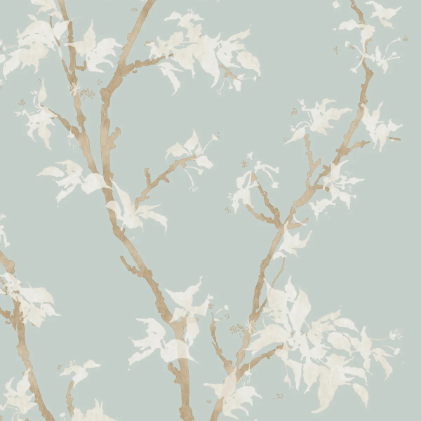 Die Tapete Chinese Branch zeigt ein raffiniertes Pflanzenmuster, bei dem sich jeder Stiel zart über die Oberfläche windet. Im Aquarellstil erheben sich die schlanken Zweige geschmeidig und erzeugen eine natürliche Bewegung. Die Verschlingung der Blätter offenbart eine meisterhafte Detailarbeit. Dieses Modell mit großer Breite von Cole and Son behält dank des Abstands der Elemente eine visuelle Leichtigkeit.