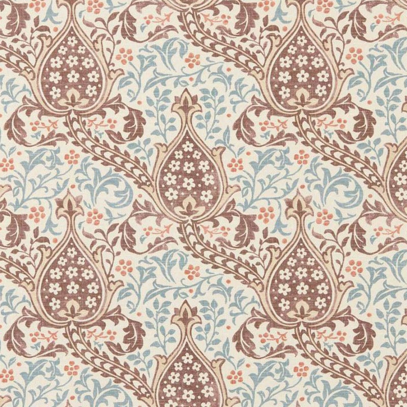 Persian Tulip ist eine Tapete mit floralem Muster, inspiriert von alten persischen Zeichnungen, neu interpretiert mit einer künstlerischen Sensibilität, die für Morris and Co. typisch ist. Die Komposition ist um mandelförmige Kapseln herum angeordnet, die mit kleinen Blüten gefüllt sind, die durch flexible Stängel verbunden sind, die sich zwischen Blättern und Blütenkränzen winden. Jedes Pflanzendetail ist Teil einer subtilen Symmetrie, die ein rhythmisches und lebendiges Dekor schafft.