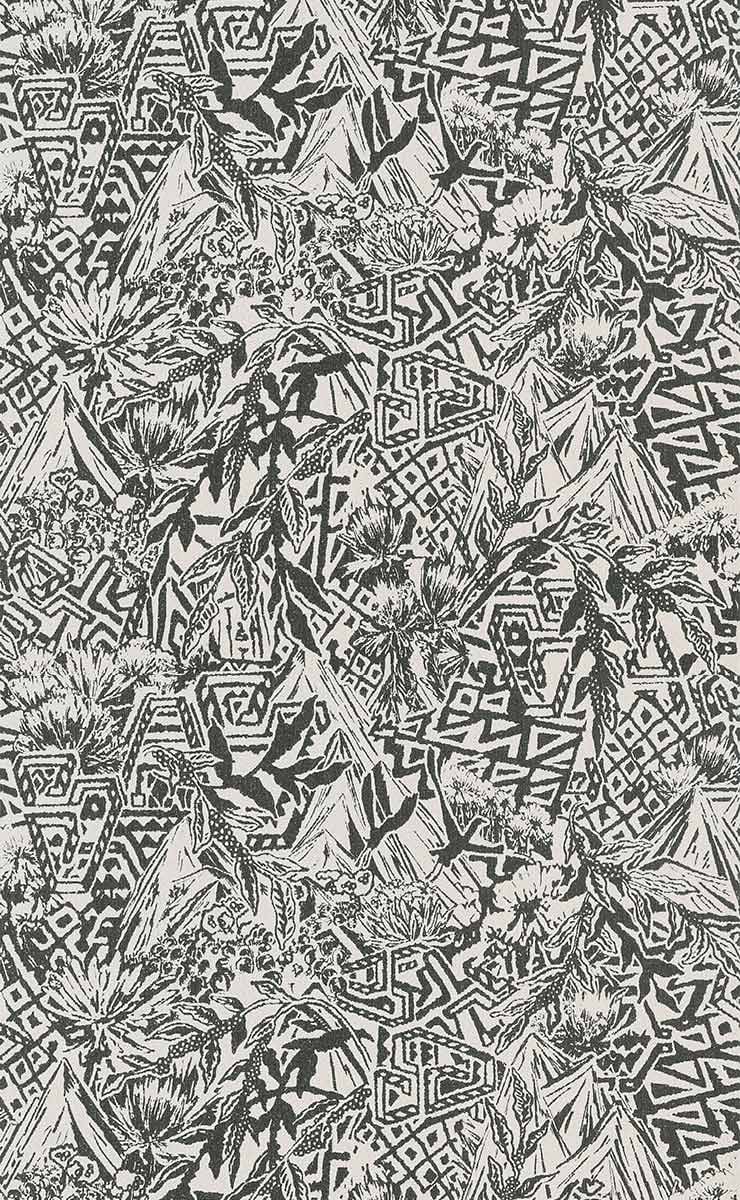 Die Wandverkleidung Sierra Nevada von Arte überträgt den wilden Geist der nordamerikanischen Weiten auf eine textile Oberfläche, die reich an Relief ist. Die Komposition mischt skizzierte Berglandschaften mit grafischen Elementen. Diese abstrakten geometrischen Formen, inspiriert von Stammesmotiven, überlagern die sorgfältigen Zeichnungen alpiner Landschaften. Die Jacquard-Webart verleiht dem Dekor eine ausgeprägte Textur.