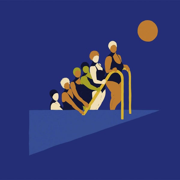 Die Tapete Equilibrio zeigt eine Gruppe von Schwimmern, die in ruhiger Erwartung erstarrt sind, als wären sie zwischen zwei Epochen gefangen. Das figurative Motiv zeigt Silhouetten, die auf einem Sprungbrett mit geometrischen Formen aufgereiht sind. Es suggeriert eine kollektive Erinnerung, eine gemeinsame Erinnerung an dauerhafte Freundschaften. Diese von Coordonné signierte Tapete spielt mit der Kraft der farbigen Flächen und der Einfachheit des Designs.