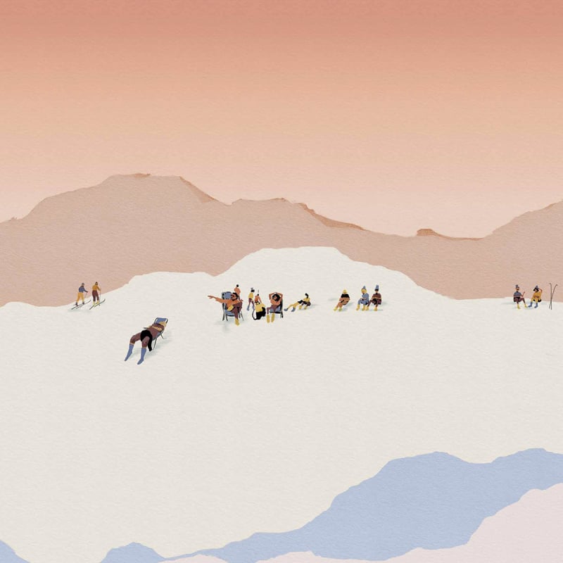 Die Tapete Aprèski fängt einen schwebenden Moment in den alpinen Höhen ein. Das figurative Motiv enthüllt eine verschneite Landschaft, die in diffuses Licht getaucht ist. In einer kontemplativen Atmosphäre erstarrt, begegnen sich Skifahrer und Wanderer in einer stillen Choreographie. Die Weichheit der Formen und das Gleichgewicht der Leerräume verstärken die Ruhe dieses von Coordonné entworfenen Dekors.