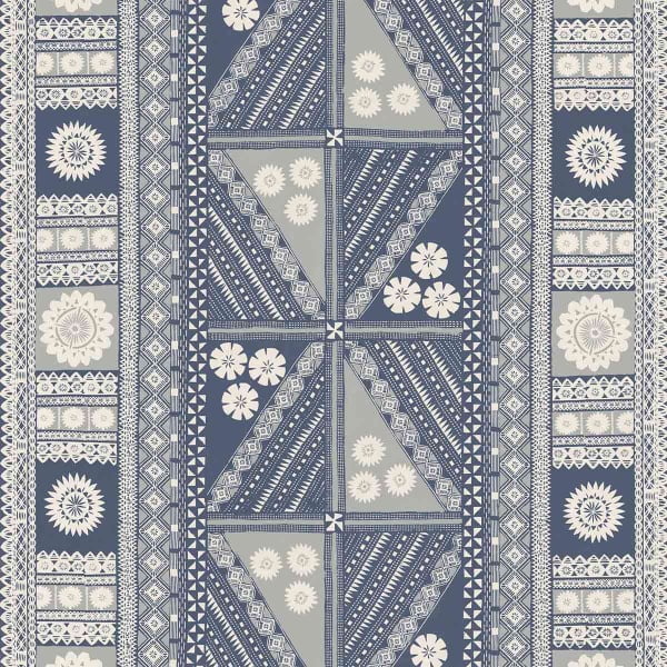 Die Tapa-Tapete von York Wallcoverings leiht sich ihre raffinierte Schönheit von handgefertigten Wandteppichen. Florale Figuren und geometrische Muster verschmelzen hier zu einer grafischen Komposition, die von Fantasie durchdrungen ist. Seine Palette, die sanfte und zarte Farbtöne mischt, hüllt den Raum in eine gemütliche Harmonie zwischen geträumter Tradition und diskreter Moderne.