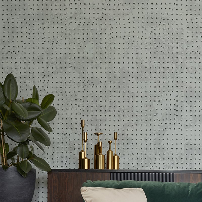 Die Panoramatapete Solo enthüllt ein sorgfältig strukturiertes abstraktes Muster, das aus einer Vielzahl von Punkten besteht. Das von Code entworfene geometrische Dekor ist das Ergebnis einer wiederholten manuellen Geste, die eine vibrierende Subtilität hervorbringt. Die Perforationen zeichnen bewegliche Linien, die sich von einem Hintergrund mit unterschiedlichen Nuancen abheben. Diese Tapete fasziniert durch ihre rhythmische Diskretion und Tiefe.