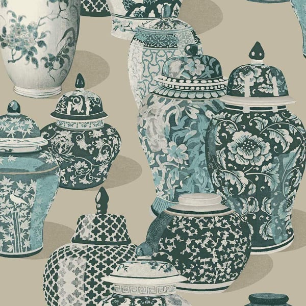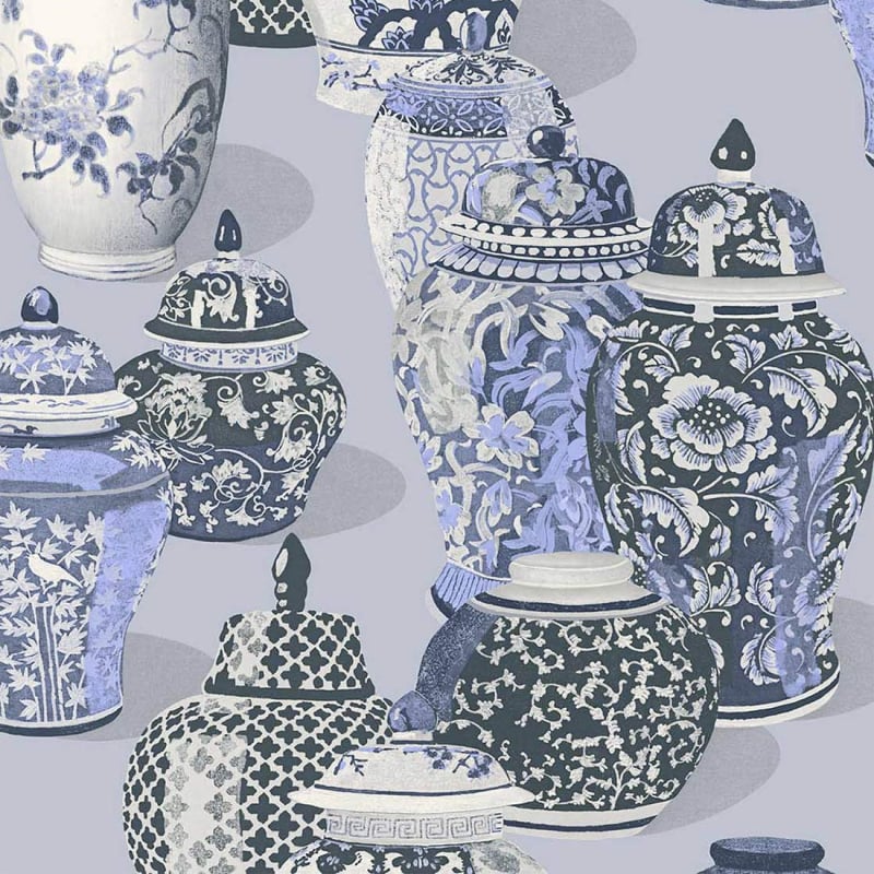 Die Tapete Porcelaine de Chine zeigt ein von Eijffinger entworfenes Muster aus kostbarer Keramik. Die von orientalischem Porzellan inspirierten Silhouetten überlagern sich mit floralen oder geometrischen Details. Jeder Topf spiegelt die uralte dekorative Kunst wider und erinnert an die gedämpfte Welt eines Gelehrtenzimmers. Diese Wandverkleidung besticht durch ihr maßvolles Layout und die Zartheit ihres Designs.
