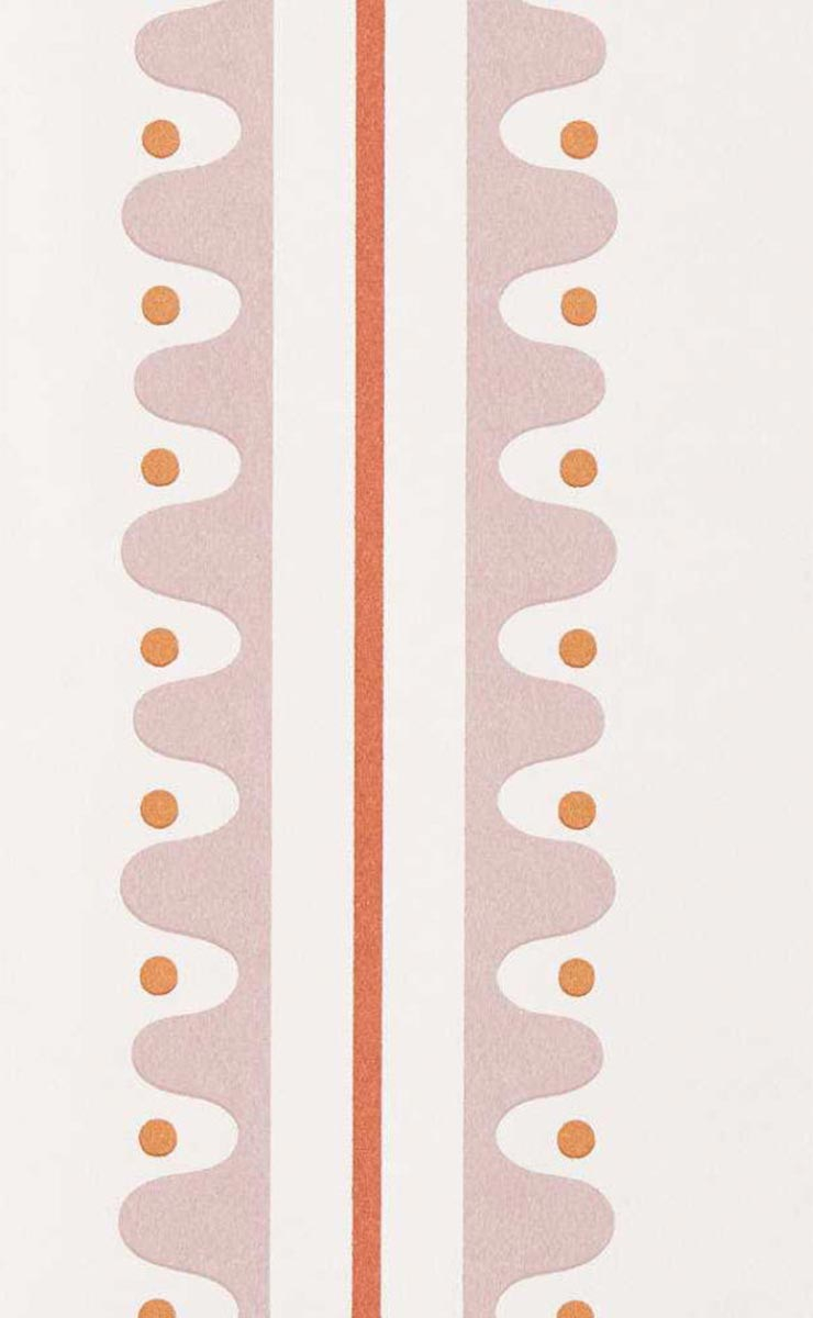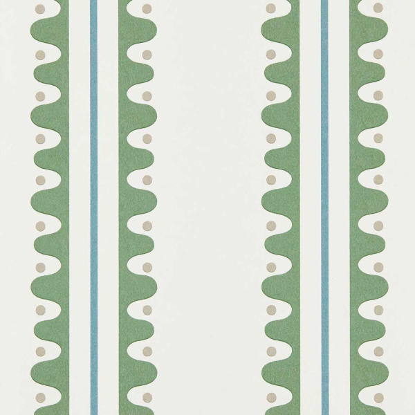 Oakham ist eine von Scion entworfene Tapete. Sein geometrisches Muster zeigt einen Wechsel von vertikalen Bändern, die aus einer regelmäßigen Wellenform bestehen, die von kleinen kreisförmigen Punkten durchbrochen wird. Diese sind perfekt in der Mitte der Kurven ausgerichtet und erzeugen einen fließenden und strukturierten Rhythmus. Das Dekor, inspiriert von einer Zahnstange, nimmt eine lineare Anordnung in großem Maßstab in einer sich wiederholenden und geordneten Komposition auf.