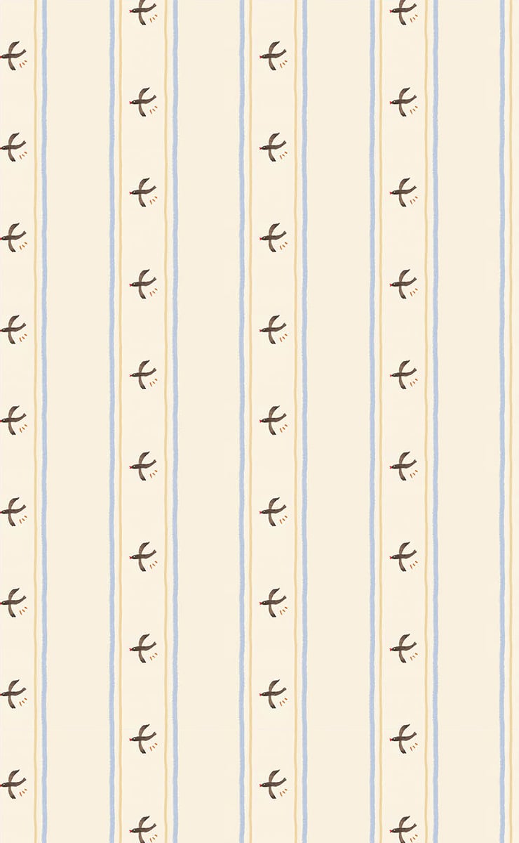 Die von Isidore Leroy entworfene Tapete Rayure Envolée entfaltet ein zartes figuratives Tiermotiv. Auf einem Hintergrund, der von feinen, handgezeichneten Streifen durchzogen ist, erheben sich kleine Vögel in einem friedlichen Flug. Die Zeichnung, die in einem naiven und fröhlichen Stil gearbeitet ist, unterstreicht die Leichtigkeit der Komposition. Diese Wandverkleidung strahlt eine sanfte Poesie aus, zwischen schwebender Bewegung und kindlicher Zärtlichkeit.