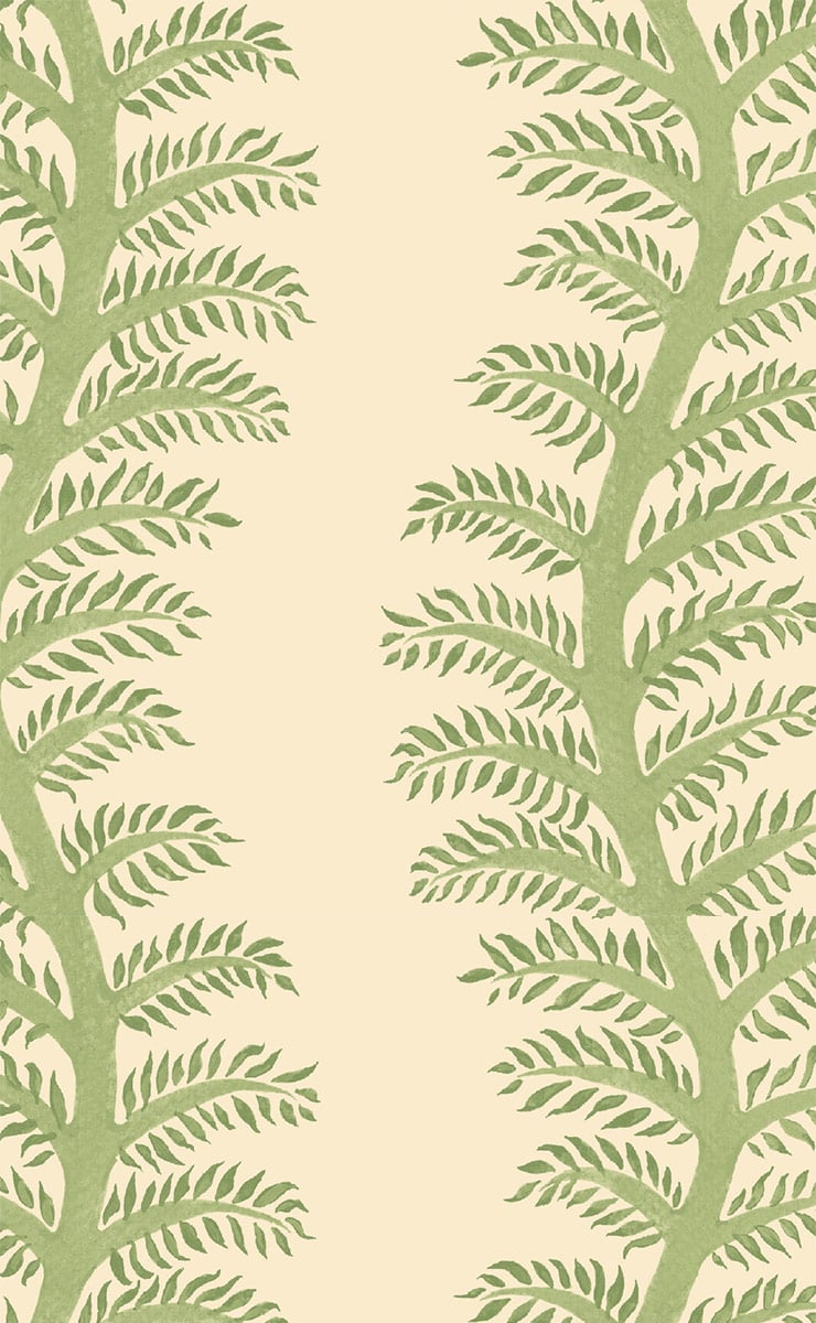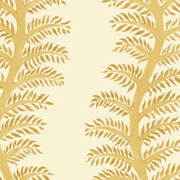 Die Tapete Tetbury Stripe präsentiert ein Pflanzenmotiv mit skulpturalem Charme. Schlanke Zweige erheben sich in regelmäßigen Säulen, geschmückt mit feinen und länglichen Blättern. Die geordnete und sich wiederholende Natur gibt dem Raum einen subtilen Rhythmus. Diese von GP & J Baker entworfene Wandverkleidung präsentiert eine Pflanzenkomposition mit einem klaren und durchsetzungsstarken Design.