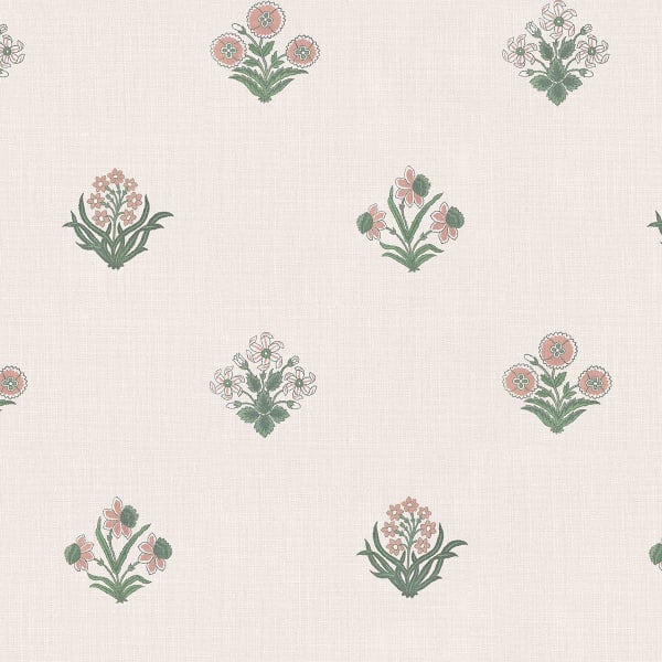 Auf der Tapete Amy entfaltet sich ein stilisiertes Blumenmuster mit Anmut und Regelmäßigkeit. Kleine, detaillierte Sträuße bilden einen geheimen Garten mit einer kontrollierten Struktur. Die Figuren mit weichen Konturen ruhen auf einer Oberfläche mit zarter Textur. Sandberg signiert hier eine Komposition voller Zurückhaltung und Charme.