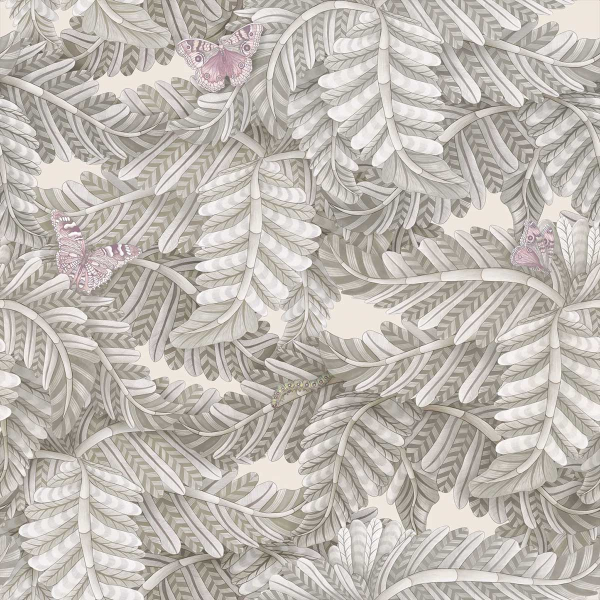 Die Tapete Acacia Canopy zelebriert den grafischen Reichtum der tropischen Vegetation. Die gefiederten Blätter schießen geschmeidig in die Höhe und suggerieren die Tiefe eines Urwaldes. Jedes Detail spiegelt die Genauigkeit einer illustrativen Zeichnung wider, bei der die feinen Rippen an eine manuelle Ausführung erinnern. Cole and Son schlüpfen hier und da Schmetterlinge und Raupen ein, die den lebhaften Charakter des Dekors unterstreichen.