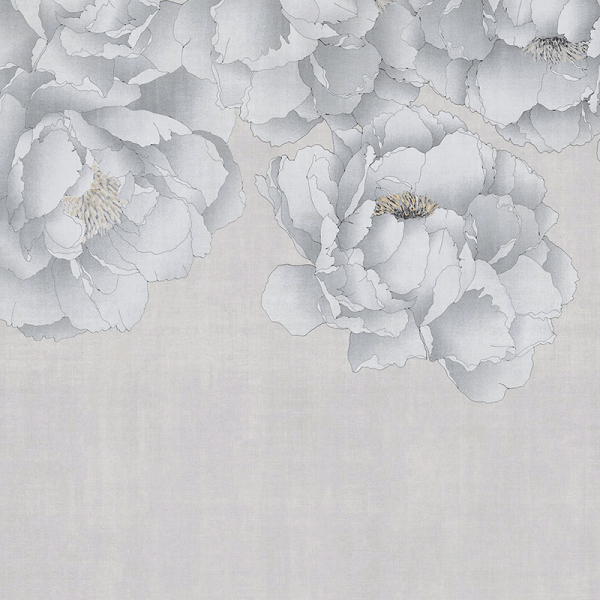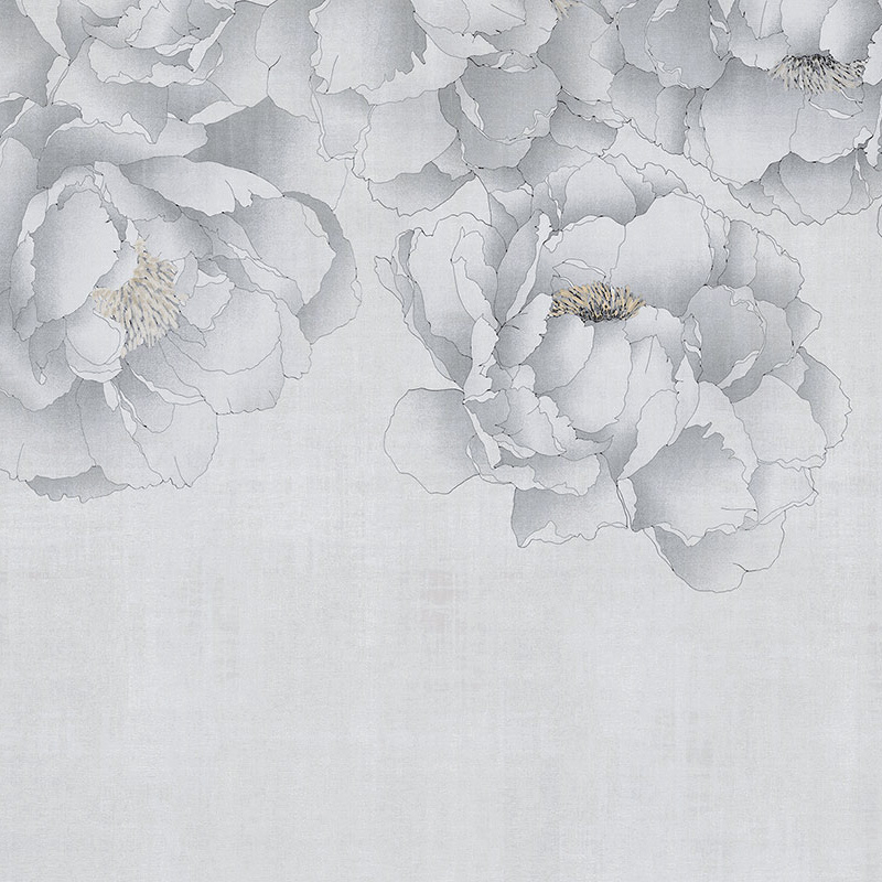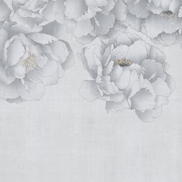 Die Panoramatapete Oriental Flowers enthüllt ein luftiges Dekor, das von großen, handgezeichneten Pfingstrosen durchzogen ist. Ihre Blütenblätter mit zarten Konturen entfalten sich im oberen Teil, als wären sie über einem subtil strukturierten Hintergrund aufgehängt. Das Ganze erinnert an einen patinierten Schleier, zwischen floraler Weichheit und grafischer Leichtigkeit. Eine Kreation, signiert von Londonart, die sich in raffinierter Harmonie ausdrückt.