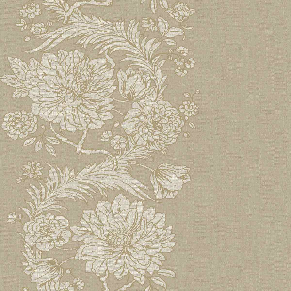 Gisela ist eine Tapete mit floralem und botanischem Muster. Lange Säulen von duftigen Farnen erheben sich geschmeidig und umschlingen große, fein erblühte Blüten. Die zarte Linienführung offenbart eine präzise ornamentale Komposition, die auf einen strukturierten Hintergrund gedruckt ist, der an die Leinwand erinnert. Dieses Modell von A Street verleiht den Wänden eine rhythmische Vertikalität, die sowohl weich als auch strukturiert ist.
