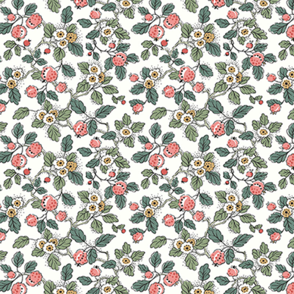 Die Tapete Framboise zeigt ein Pflanzenmotiv aus Blumen und Früchten. Gewundene Zweige sind mit stilisierten Trauben und kleinen Blütenkronen beladen, die sich auf einem einfarbigen Hintergrund entfalten. Die klaren Konturen und das visuelle Relief unterstreichen den ornamentalen Reichtum des Modells, signiert von York Wallcoverings. Diese Tapete schafft eine raffinierte ländliche Atmosphäre mit klassischen Akzenten.