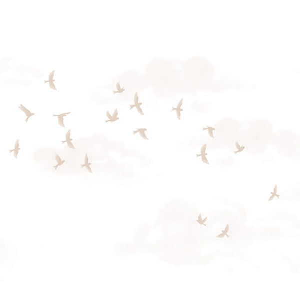 Vogelschwärme durchziehen einen wolkenverhangenen Himmel in einer Komposition von großer Finesse. Die Panorama-Tapete Murmuration veranschaulicht diese Luftbewegung mit Zartheit und fängt die Anmut des Augenblicks ein. Diese Wandverkleidung von Acte Deco präsentiert ein grafisches, fast traumhaftes Motiv. Jedes Element ist Teil eines subtilen Gleichgewichts zwischen Leichtigkeit und Präzision.