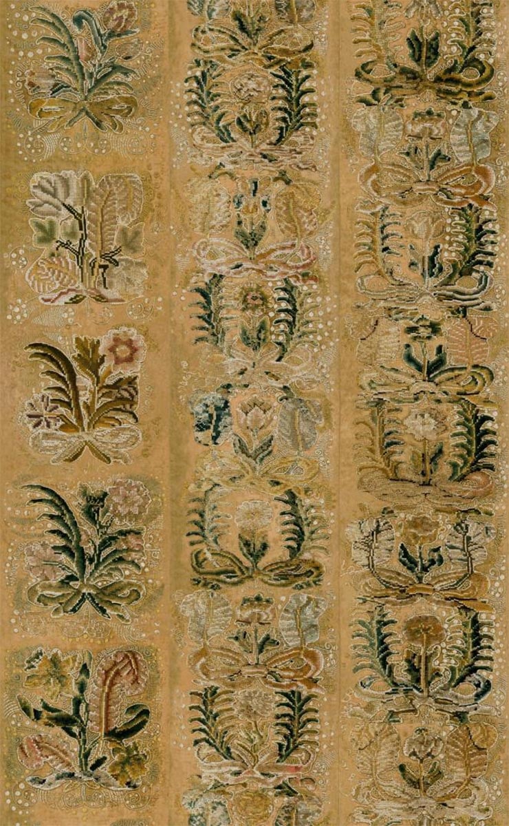 Mit der Tapete Ornement bringt Arte dekorative Raffinesse an die Wand. Auf einem ultrasanften Samtgrund reihen sich stilvolle Blumensträuße in regelmäßigen Abständen aneinander, die mit bemerkenswerter Sorgfalt im Kreuzstich gestickt sind. Das Muster greift die Verzierungen eines Wandteppichs aus dem 18. Jahrhundert auf, der von Sanftheit und Erinnerung geprägt ist. Jedes Blumenmotiv scheint durch die Fülle der handwerklichen Arbeit zum Leben erweckt zu werden.