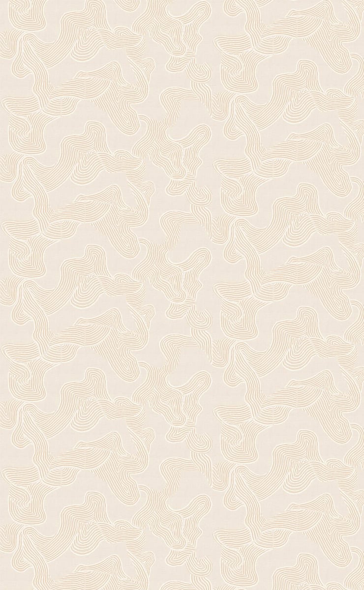 Die von Arte entworfene Tapete Eolian erinnert an die vom Wind geformten Wellen in den Dünen. Sein abstraktes Muster entfaltet ein Netz aus sich bewegenden Linien, die wie auf Sand gezogen wirken. Die glänzende Metalloberfläche fängt das Licht ein und betont das Relief. Diese Wandverkleidung lädt zum Berühren ein und vermittelt ein Gefühl, das sowohl fließend als auch mineralisch ist.