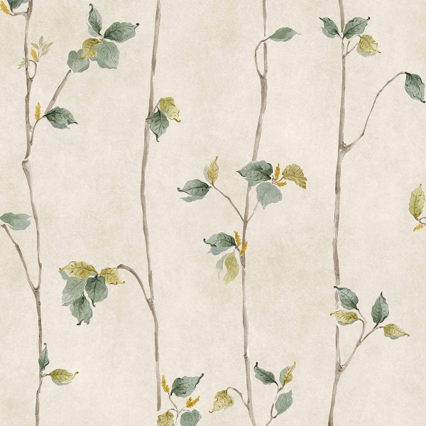 Auf der von Coordonné herausgegebenen Tapete Azahar strukturieren feine Stängel den Raum in einem gleichmäßigen vertikalen Rhythmus. Das Muster zeigt eine schlanke Pflanzenkomposition, bei der sich lange Zweige nach oben winden und ein luftiges Geflecht bilden. Leichte Blätter, mal offen, mal geneigt, verleihen dem Ganzen eine natürliche Bewegung. Die feinen Linien, die an eine botanische Illustration erinnern, heben sich von einem dezent patinierten Hintergrund ab.