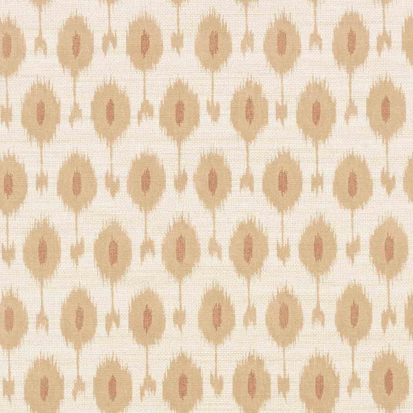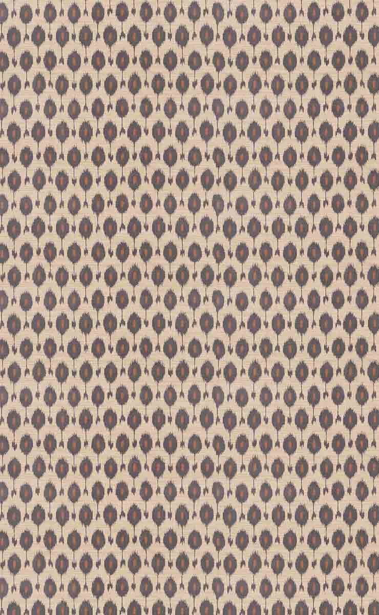 Romo präsentiert die Tapete Otillo, die mit einem kleinflächigen Ikat-Muster verziert ist, dessen unregelmäßige Konturen an die Handgriffe des handwerklichen Webens erinnern. Unregelmäßige Kreise mit gefüllten Herzen sind in einem bestimmten Rhythmus auf der Oberfläche angeordnet und bilden ein weiches, rhythmisches Muster. Diese Wandverkleidung offenbart eine subtile und lebendige Textur. Das Ganze vermittelt ein zugleich grafisches und warmes Gefühl.