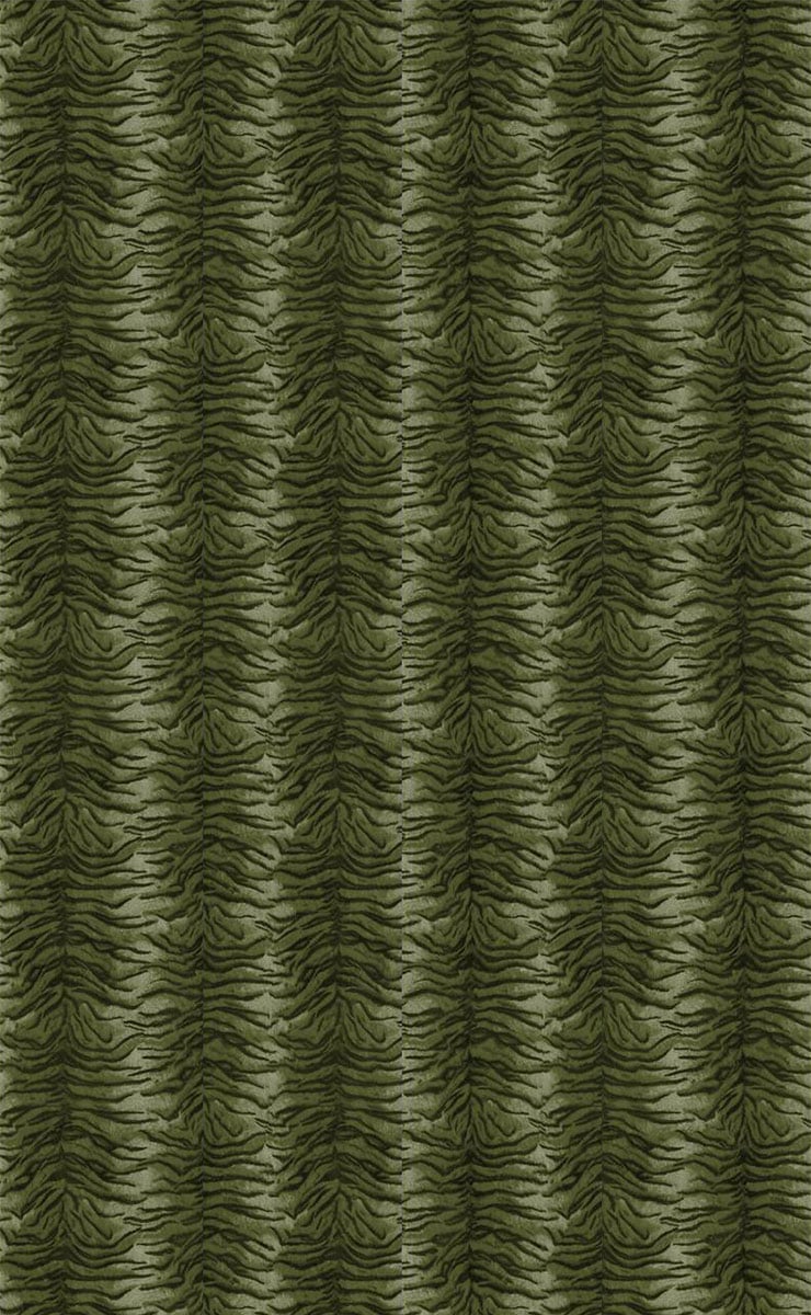 Die Tapete Caspian von House of Hackney zeigt ein vom Tiger inspiriertes Tiermotiv. Das Muster besteht aus gewundenen, unregelmäßigen Streifen, deren Konturen in einem dezent strukturierten Material zu verschwimmen scheinen. Jede Linie folgt einem organischen Rhythmus und bildet eine dichte grafische Präsenz. Das Ganze lässt die Kraft des Raubtiers in einem tiefen und lebendigen visuellen Gefüge zum Vorschein kommen.