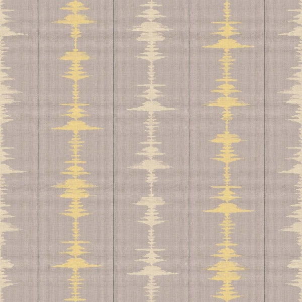 Vibes von Tres Tintas Barcelona ist eine Tapete mit einem geometrischen Muster, das durch breite vertikale Streifen strukturiert ist. Das Muster erinnert an abstrakte Partituren, die aus der akustischen Sprache der Städte entstanden und in visuelle Rhythmen umgesetzt wurden. Symmetrische Formen vibrieren wie grafische Wellen, während sich die zentralen Figuren in aufeinanderfolgenden Echos entfalten. Die Wandfläche wird zu einem rhythmischen Raster, das von einer kontrollierten Energie durchzogen wird.