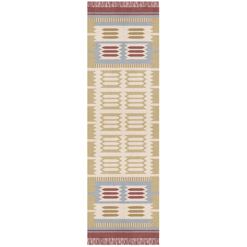 Der Hilma-Flurläufer erinnert mit abwechselnden geometrischen Formen an skandinavisches folkloristisches Know-how. Sein Muster aus Linien und abstrakten Figuren erinnert an das Können der Handwerker von einst. Die Verbindung der Naturfasern verleiht ihm eine weiche und warme Textur. Dieses von Layered entworfene, handgewebte Stück verkörpert ein Gleichgewicht zwischen Tradition und Moderne.