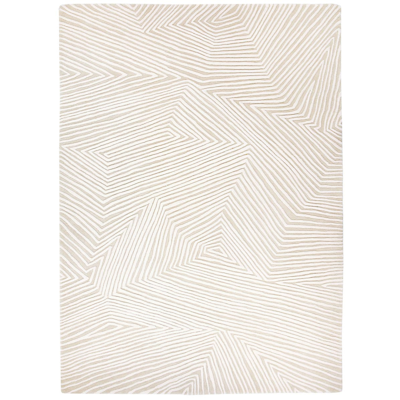 Ezra ist ein Teppich mit einem geometrischen Streifenmuster, bei dem sich geschwungene Linien in einem Fluss entfalten. Jede Linie bildet eine eckige und konzentrische Form, die mit Perspektive und visuellen Kontrasten spielt. Dieses lebendige Dekor aus Wolle offenbart eine dichte und warme Textur. Er ist handgeknüpft und trägt die Signatur von Romo, zwischen handwerklicher Präzision und zeitgenössischer Abstraktion.