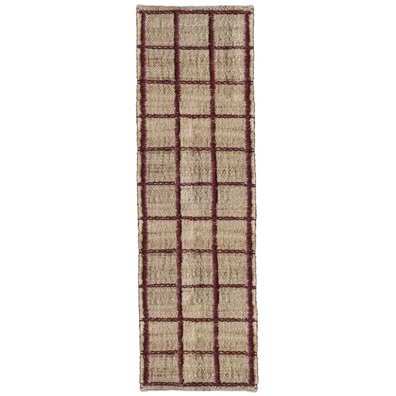 Der Flurläufer Strata Jute präsentiert ein kariertes Muster mit klaren Linien, das die Spuren der Handwerkskunst trägt. Die Regelmäßigkeit des Musters kontrastiert mit der Textur der Oberfläche. Das Relief der Linien unterstreicht den skulpturalen Charakter des Ganzen. Dieses von Layered entworfene Modell aus natürlicher Jute ist handgewebt und erforscht das Gleichgewicht zwischen Rohmaterial und Geometrie.