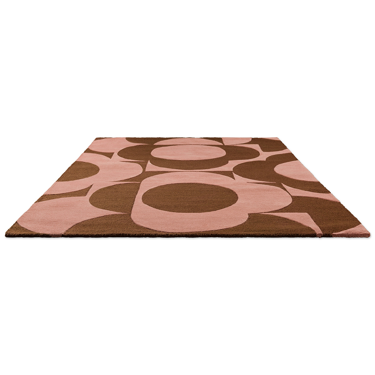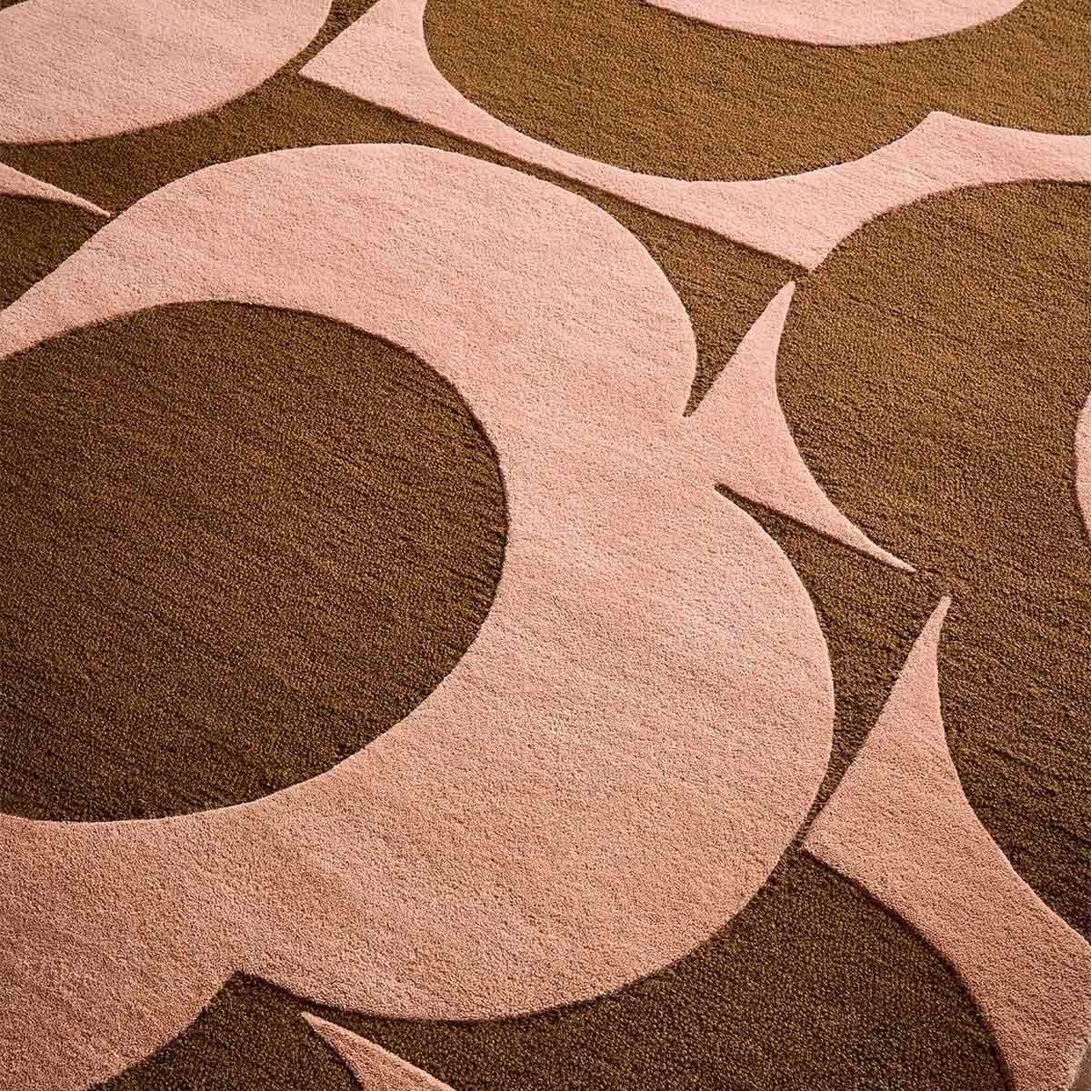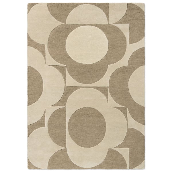 Eine Blumenkomposition mit geometrischen Konturen entfaltet sich kühn auf dem Teppich Prism Flower. Kreise und Blütenblätter verschachteln sich in einer arrangierten Wiederholung und bilden ein pflanzliches Gitter. Dieses Modell aus handgetufteter Wolle verkörpert die einzigartige Ästhetik von Orla Kiely, die zwischen Abstraktion und grafischem Muster liegt. Jedes Detail suggeriert einen beruhigenden Rhythmus, getragen von einer architektonischen Struktur.