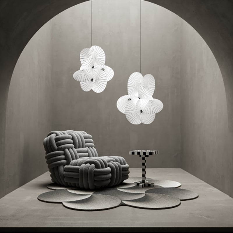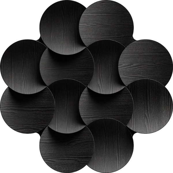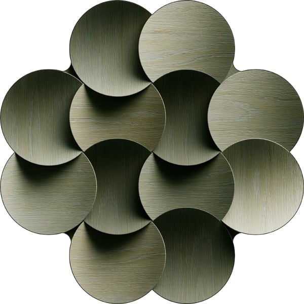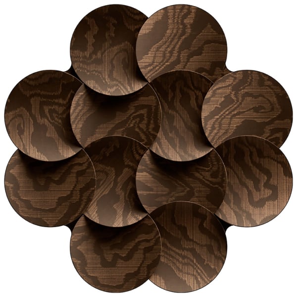 Der Teppich Halo Rise weist ein dreidimensionales geometrisches Muster auf, das aus kreisförmigen Reliefformen besteht. Der skulpturale Schwung erzeugt ein Spiel von Licht und Schatten auf der Oberfläche. Jede Kurve erinnert an die Feinheit eines geformten Holzes mit seinen sichtbaren Maserungen. Diese von Moooi Carpets entworfene Konstruktion deutet auf Präzisionsarbeit hin, die zeitgenössisches Design und sensorische Kunst verbindet.