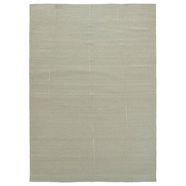Der Teppich Flow Shen offenbart eine zurückhaltende abstrakte Ästhetik, die von einem Geflecht aus kaum skizzierten, gewundenen Linien durchzogen ist. Diese unregelmäßigen Konturen erzeugen eine subtile grafische Textur im minimalistischen Stil. Dieses Dekor aus Leinen offenbart ein authentisches taktiles Gefühl. Linie Design verherrlicht hier die Kunst des manuellen Webens in einem zeitgenössischen Ausdruck.