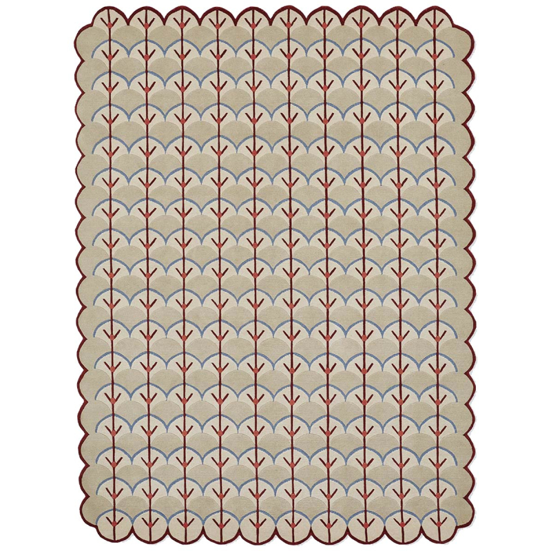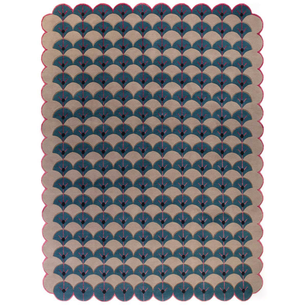 Der von Floor Story herausgegebene Teppich Marmalade entfaltet ein sich wiederholendes geometrisches Muster, das an stilisierte Fächer erinnert. Jede Einheit besteht aus einer Form, die von einer zentralen Achse durchquert wird, die von kleinen Lichtakzenten durchzogen ist. Dieses Dekor aus natürlicher Wolle wird durch die traditionelle Technik des Knüpfens zum Leben erweckt. Die grafische Struktur strahlt eine raffinierte und lebendige Präsenz aus.