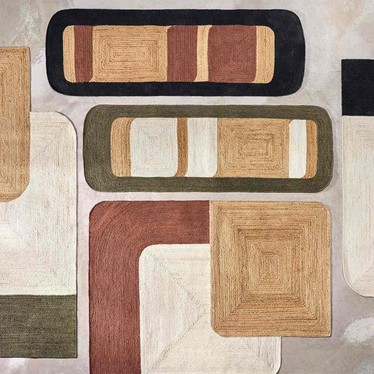 La Maison Casamance präsentiert den Teppich Bali, ein Stück mit einem geometrischen Muster, das durch asymmetrische Formen strukturiert ist. Quadrate, eckige Linien und unregelmäßige Flächen fügen sich geschmeidig ineinander und bilden ein fließendes Muster. Er besteht vollständig aus Jute und offenbart eine dichte Pflanzenfaser mit einem feinfühligen Relief. Dieses von Hand gewebte Dekor zeichnet sich durch eine schlichte grafische Präsenz aus, die von klaren Linien unterstrichen wird.