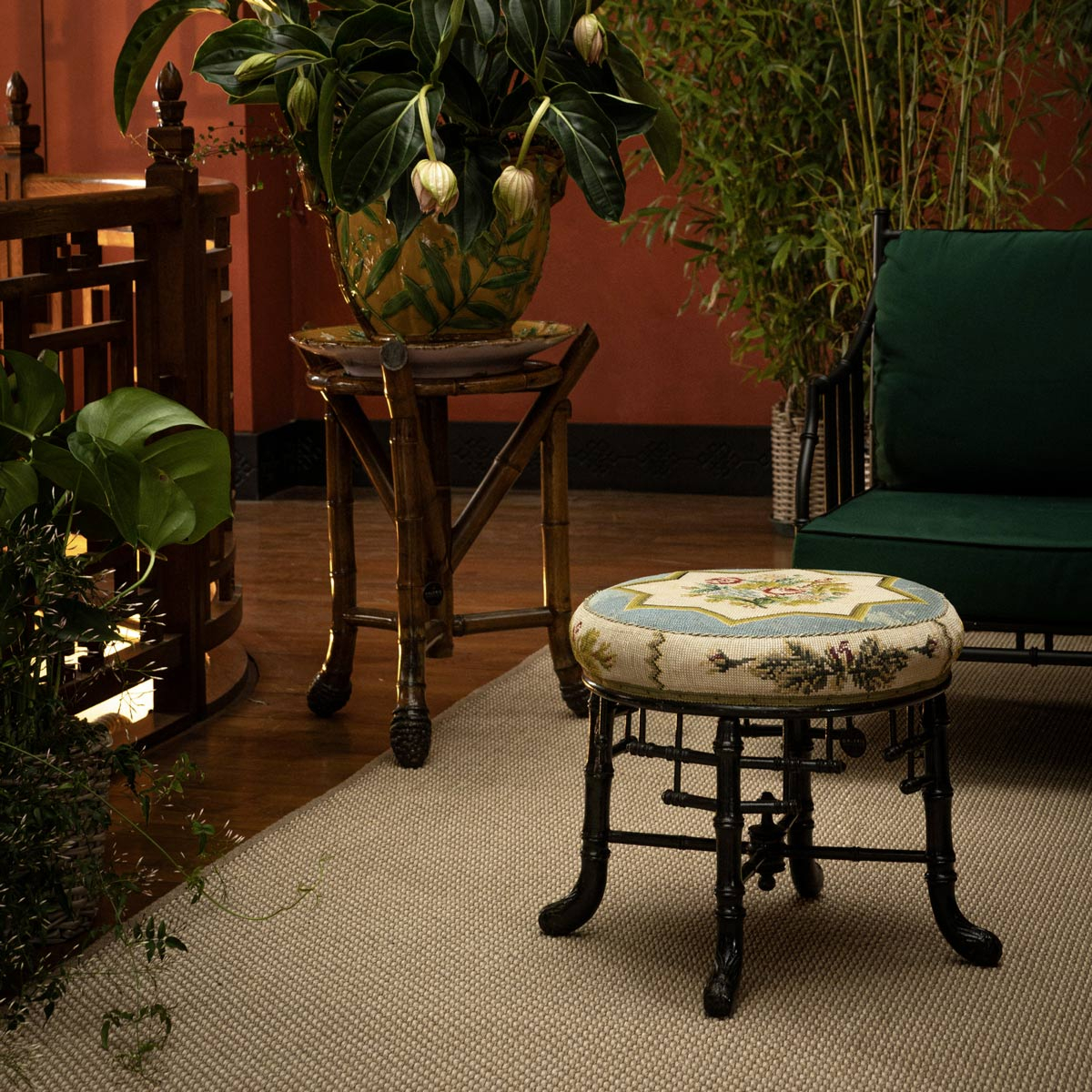 Lelièvre Paris stellt Amure vor, einen handgewebten Teppich mit geometrischem Muster, dessen Oberfläche ein regelmäßiges Karomuster aufweist. Das Gewebe bildet eine dichte, fast architektonische Struktur, in der jede Schlaufe ein dichtes und geordnetes Netz bildet. Die Textur vermittelt eine einzigartige taktile Präsenz, die durch eine Prägung aus erhabenen Punkten unterstrichen wird. Eine einfarbige Bordüre umrahmt das Ganze und unterstreicht präzise seine Struktur.
