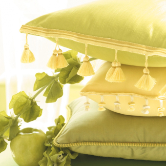 The Collection Lily by Houlès is composed of contemporary bicolour tiebacks, little fringes, tassels and braids in 15 fresh, bright colours like a display of multi-coloured sweets. The lightweight trimmings in the Lily Collection bring graphic accents and delicate pompom fringes, tassels, contemporary braids and frills that will embellish cheerful, colourful design schemes.
